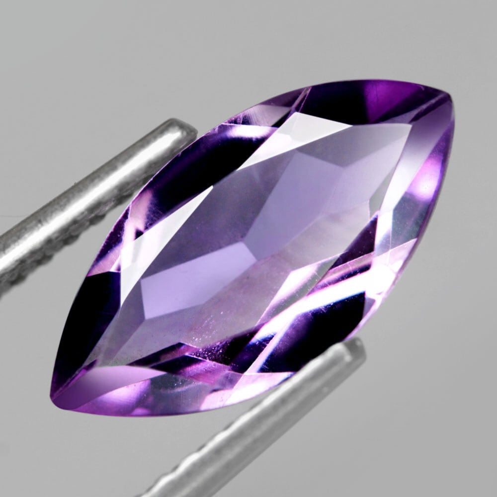 私が直接輸入した品です。ブラジル産の天然アメジスト。カットはマーキースカットで、色は美しい Purple です。1か所アイレベルの傷。ルーペレベルでは、少し摺り傷がありますが、とても美しい石です。総合的なグレードは【A++】。この価格でご提供できるのは、直輸入直販だからこそです。