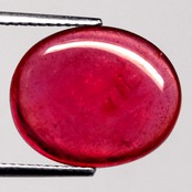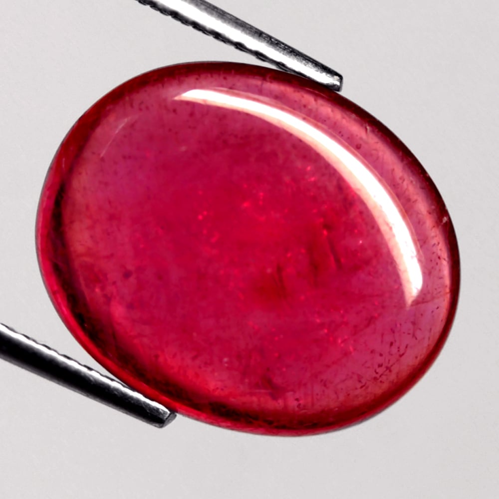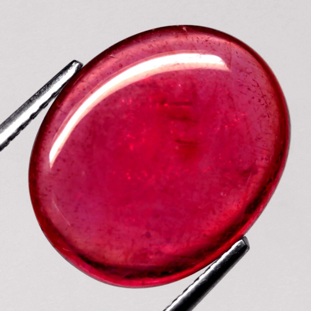 私が直接輸入した品です。モザンビーク産の天然大粒ルビールース。カットはオーソドックスなオーバルカボションで、色は Pinkish Red です。アイレベルのインクルージョン。ルーペレベルでもインクルージョンと傷があります。グレードは【A+】。この価格でご提供できるのは、直輸入直販だからこそです。