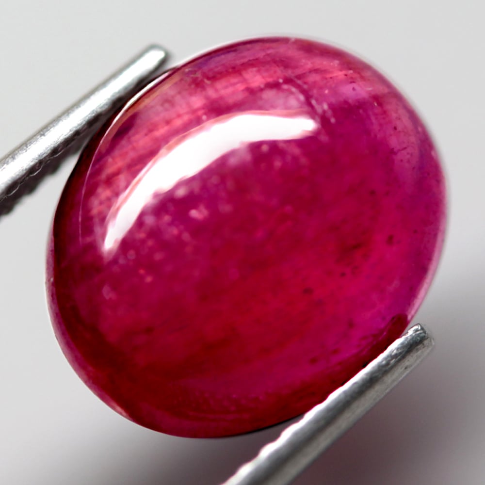 私が直接輸入した品です。モザンビーク産の天然大粒ルビールース。カットはオーソドックスなオーバルカボションで、色は Top Red Pink です。アイレベルのインクルージョン。ルーペレベルでも複数のインクルージョンと傷があります。グレードは【A+】。この価格でご提供できるのは、直輸入直販だからこそです。