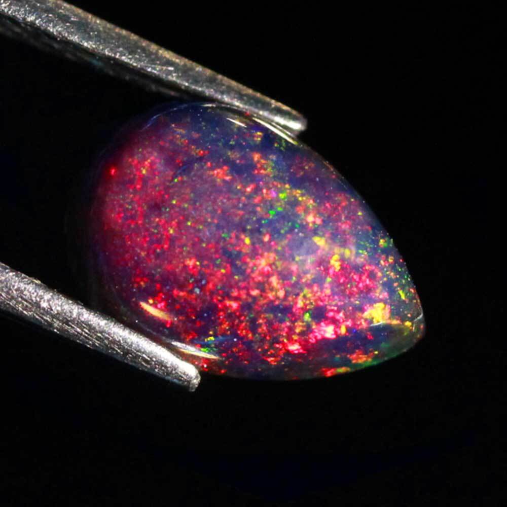 私が直接輸入した品です。エチオピア ウェロ産の天然オパール。カットはオーソドックスなペアカボションで、色は Green Violet Blue Multi Colors です。遊色は強弱はあるものの全色が出ています。目立ちませんが、アイレベルの傷。ルーペレベルでは擦り傷はあるものの目立たず良い状態です。グレードは【A++】。この価格でご提供できるのは、直輸入直販だからこそです。
